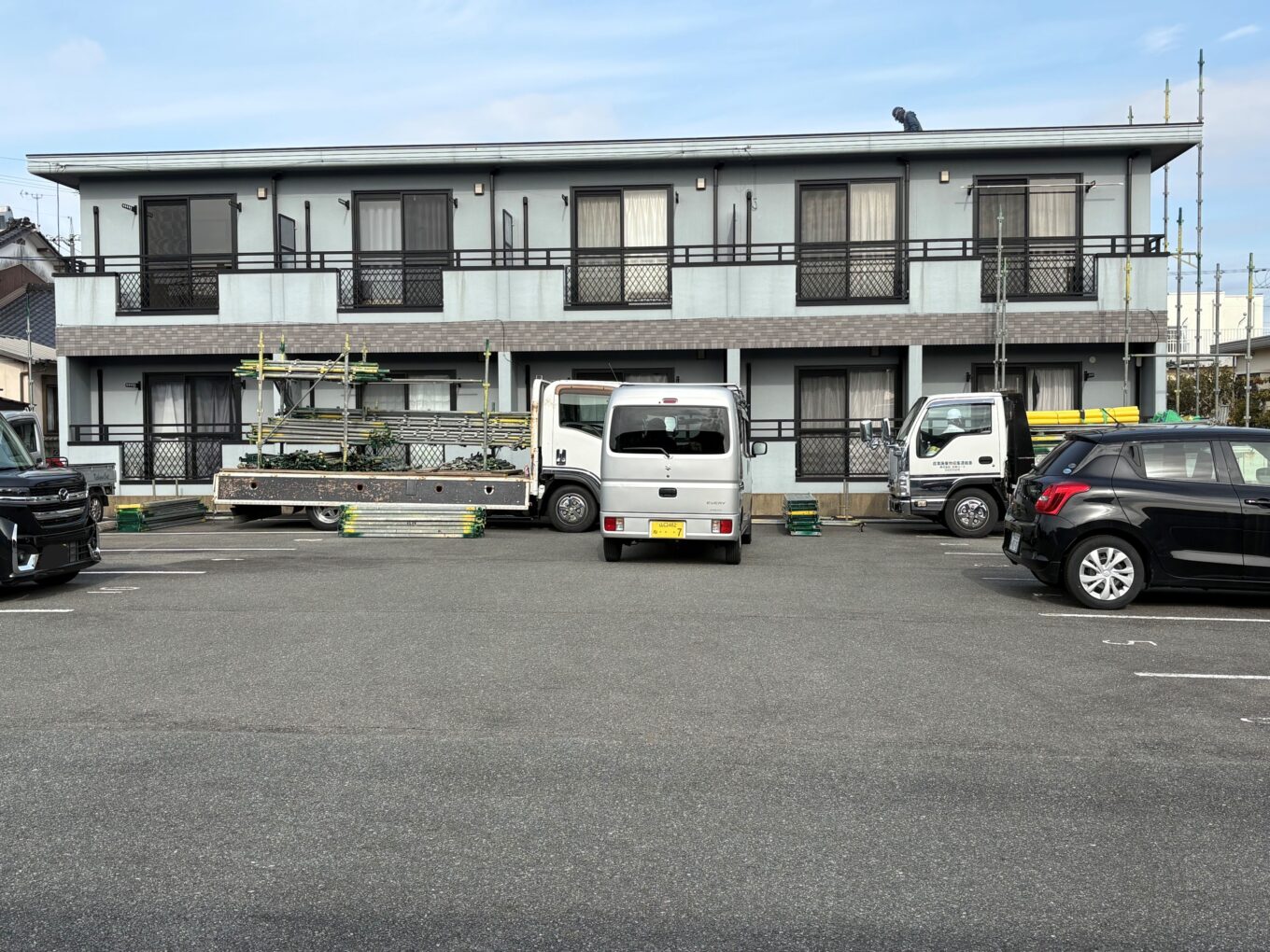 アパートの塗装工事が始まりました。