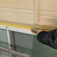 宇部市のO様邸の工事はこの日は養生~軒天塗装~外壁下塗りと進みました。