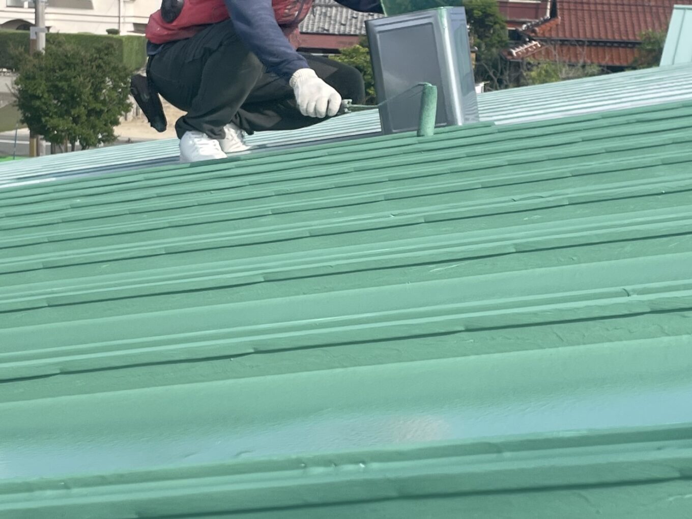 屋上の錆止め塗布作業をしています