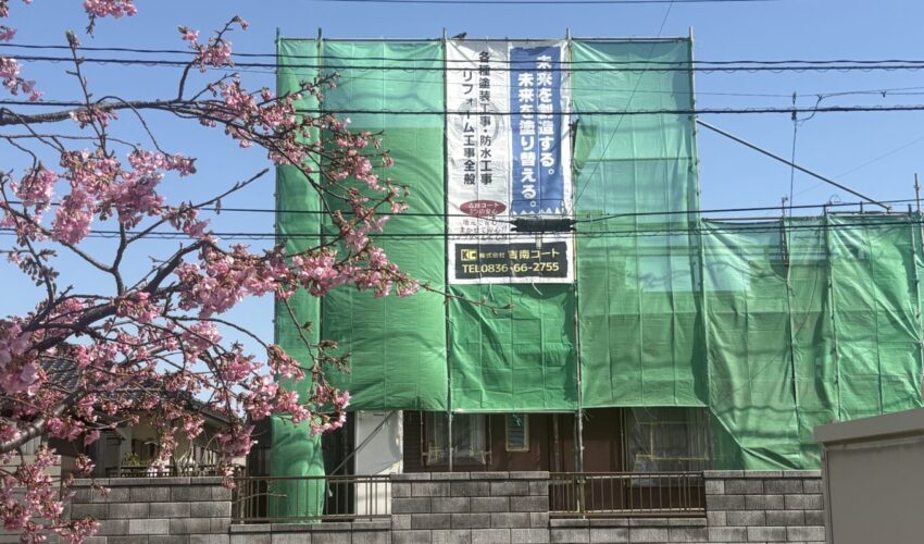 山口市の住宅では外壁塗装工事が始まりました。