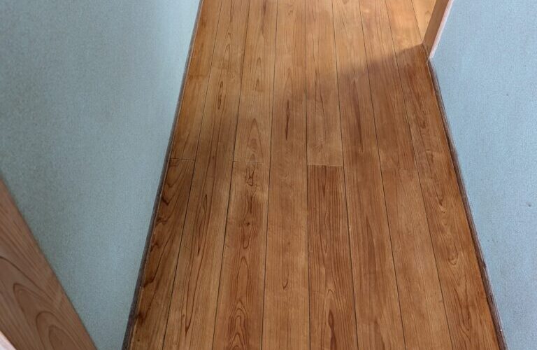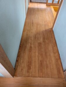 長い年月が経って劣化した廊下も塗り替えると木目を生かした素敵な色合いになりました。