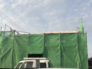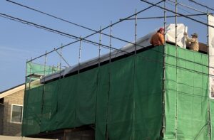 防水シートで覆う作業