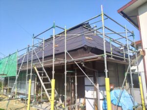 山口市の屋根塗装工事では中塗り作業をしました。