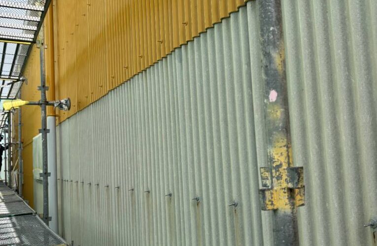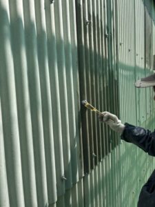 防府市の倉庫では外壁の塗装継続中です。