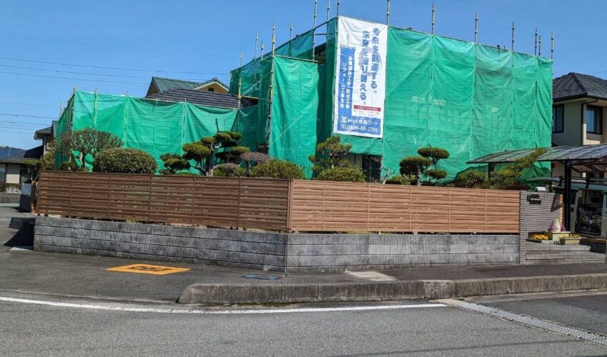 山口市I様邸で外壁塗装工事をしています。