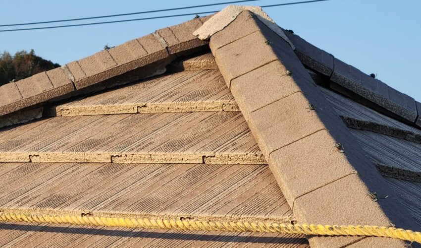山口市の屋根外壁塗装工事では、この日はセメント瓦の洗浄作業をしました。