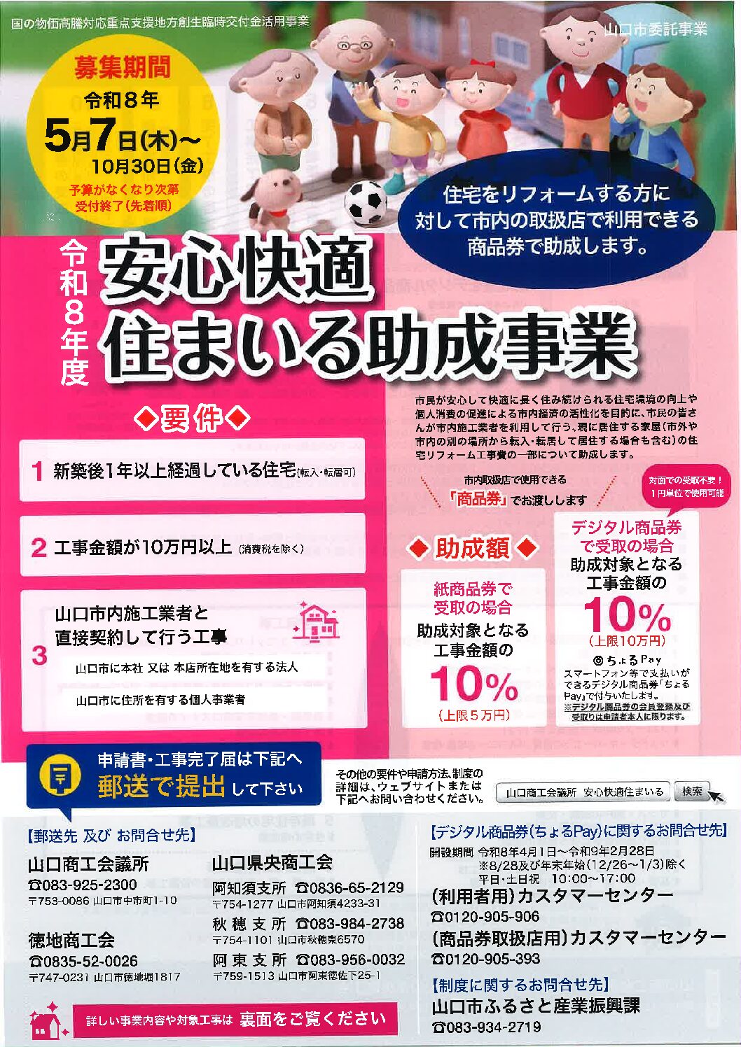 令和8年度山口市住まいる助成事業⇒ https://www.city.yamaguchi.lg.jp/soshiki/63/187527.html